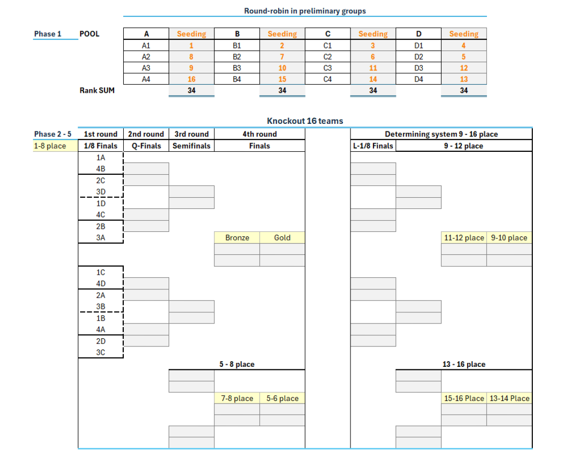 In addition, teams eliminated in the knockout stages will continue competing in placement matches to determine final rankings from 1st to 16th place, ensuring a full competition experience for all participating nations.
